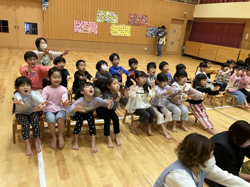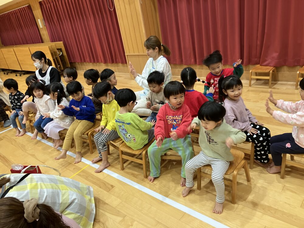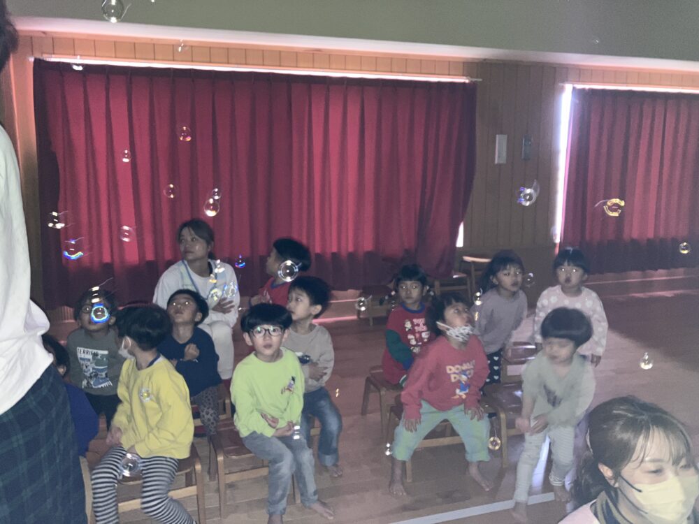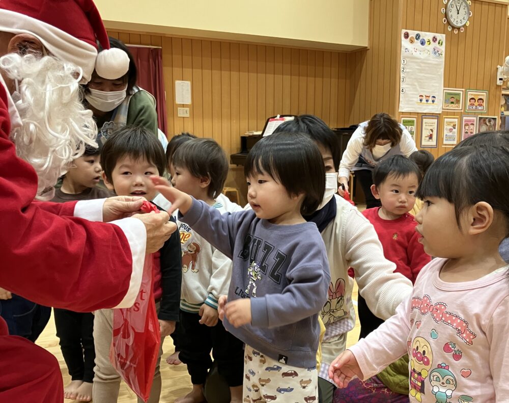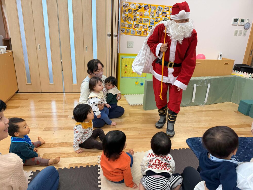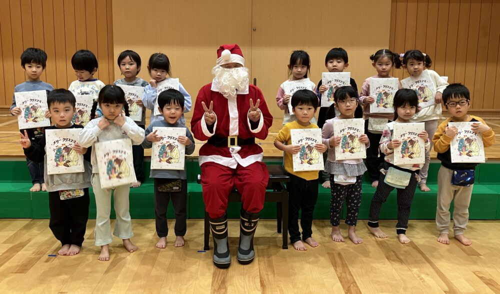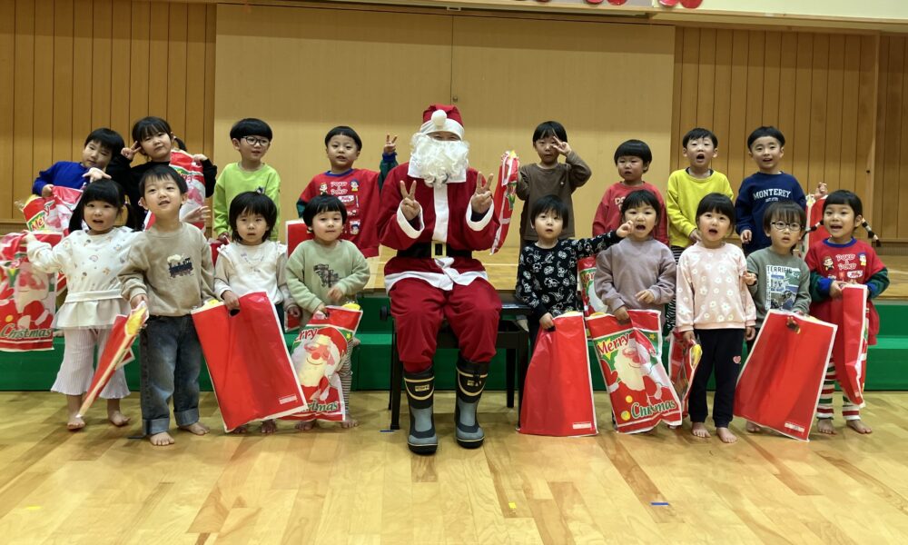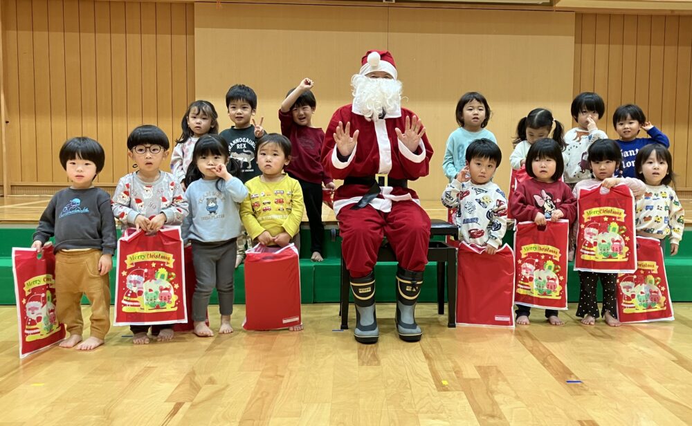 今日は子どもたちが待ちに待ったクリスマス☆河田保育園では全園児でクリスマス会を楽しみました。まずはミュージックケアでお楽しみ♪お馴染みの音楽に合わせてリズムや楽器あそびをしたり、マジックショーやキラキラのイルミネーションの中でのシャボン玉などクリスマス特別バージョンも楽しみました。その後は各クラスのクリスマス飾りをそれぞれ紹介し合い、みんなで♬あわてんぼうのサンタクロース♬を大合唱。すると…何と!!!河田保育園にもサンタさんが来てくれました~☆子どもたちのキラキラな表情から嬉しいがあふれていましたよ☆