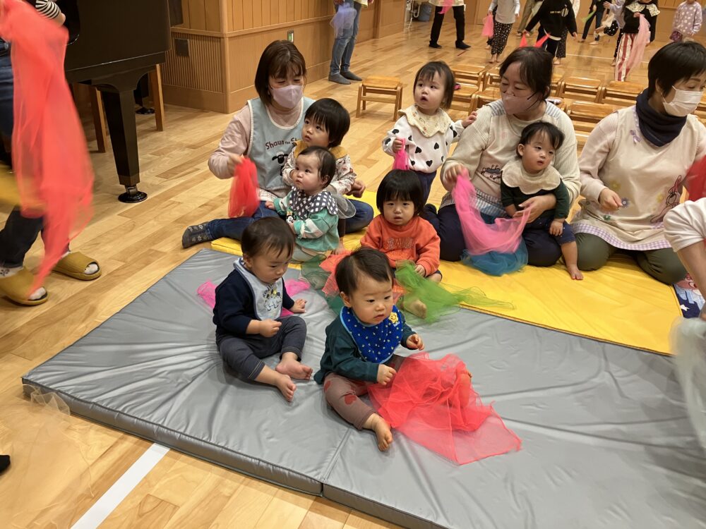 ミュージック・ケアでは、音楽を聴きながら、親子でたっぷり触れ合いを楽しみました♪