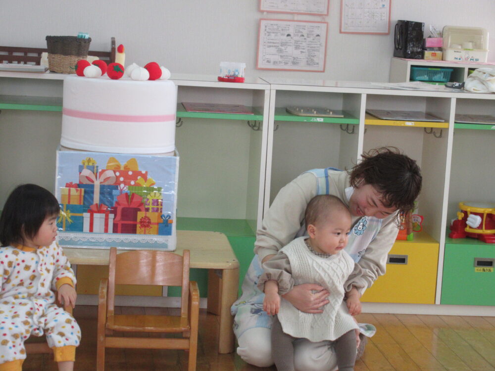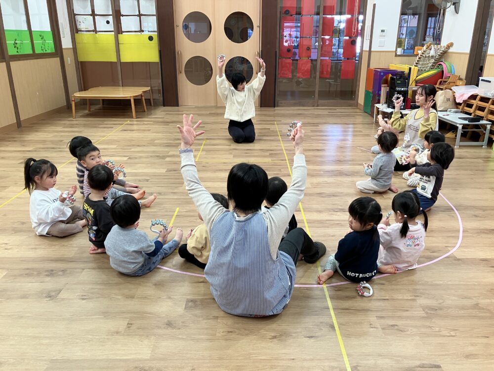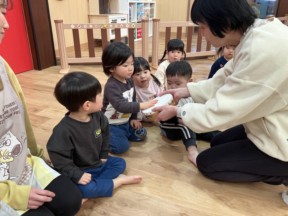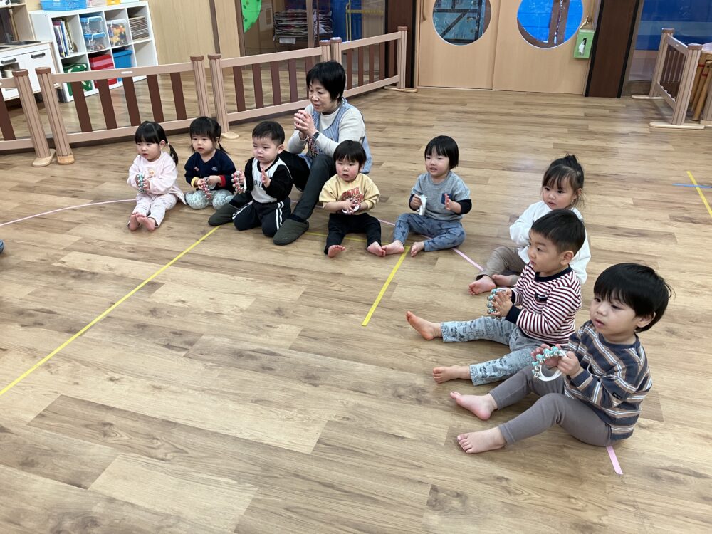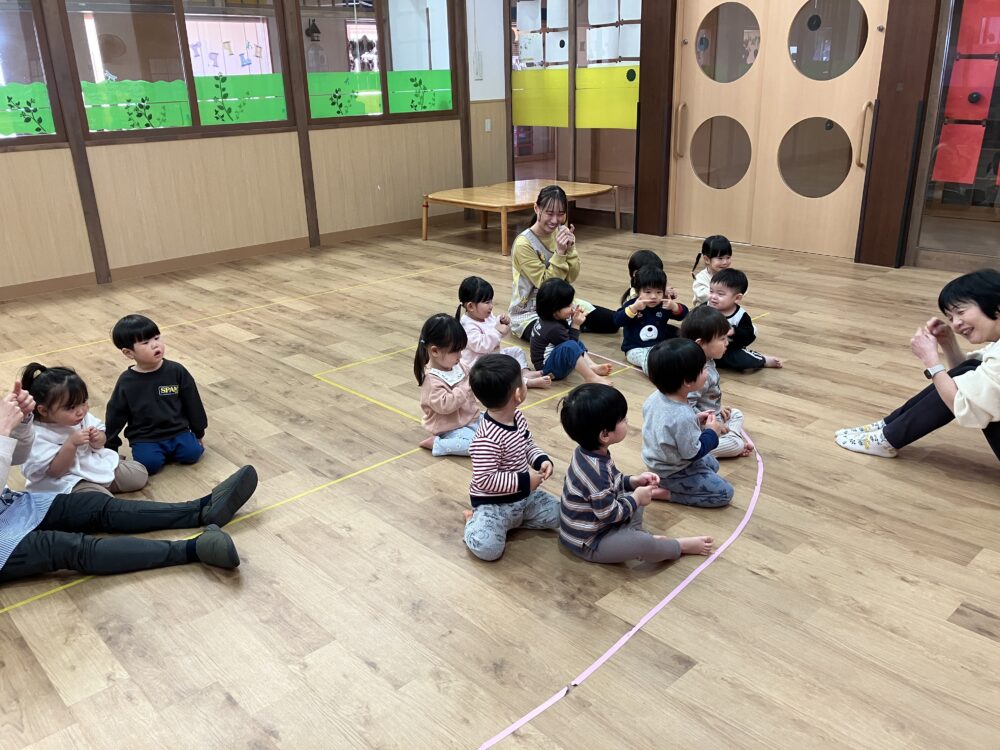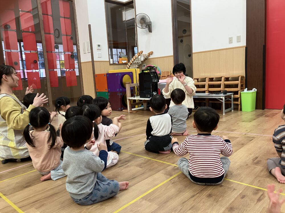 今日は2歳児の発表会がありました。劇ごっこでは「大きなかぶ」を、リズムあそびでは「ラムのラブソング」「ワイワイワールド」を発表しました。たくさんのお客さんを前にドキドキワクワクの子どもたち。いろんなかわいい表情がみられ、どの子も最後まで頑張って発表することができました。温かい拍手もたくさんいただき、ニコニコな子どもたちでした。