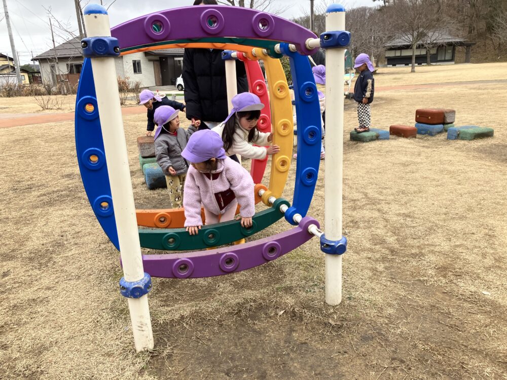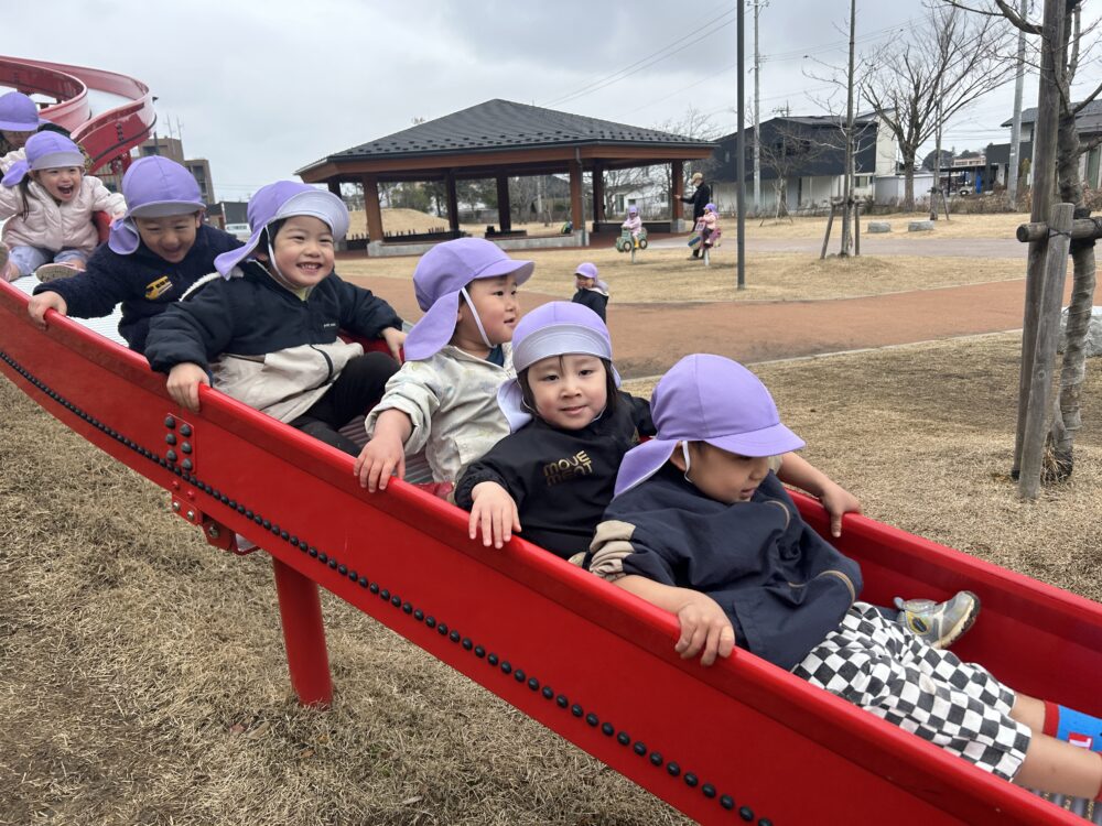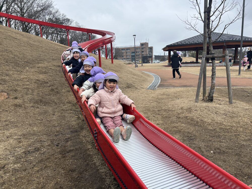ブランコや体動かしゾーンでは、お友だちが挑戦している姿を見て挑戦する子もたくさんいました!体力もたくさんついてきているので、何度も楽しんでましたよ☆そして、大人気だったのが滑り台!!速いスピードでしたが、「きゃー!!」と嬉しそうに滑る子どもたちでした!お友だちと長い電車になって滑ると、大興奮でとっても楽しそうでしたよ!