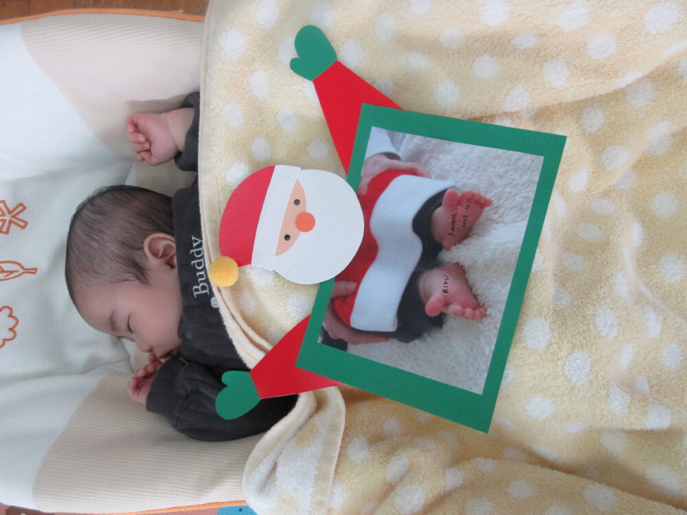 小さな足の写真と眠っているRくん…何とも言えない可愛らしさです💓今回は、クリスマス製作でかわいいあんよの思い出を残してみました👣