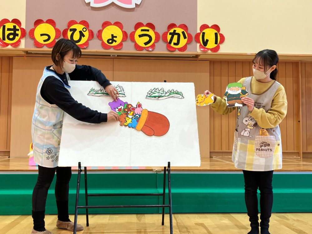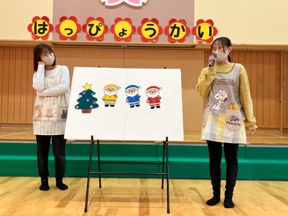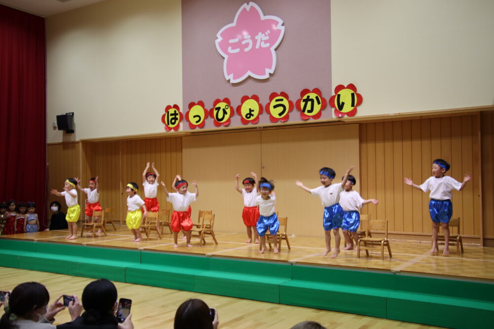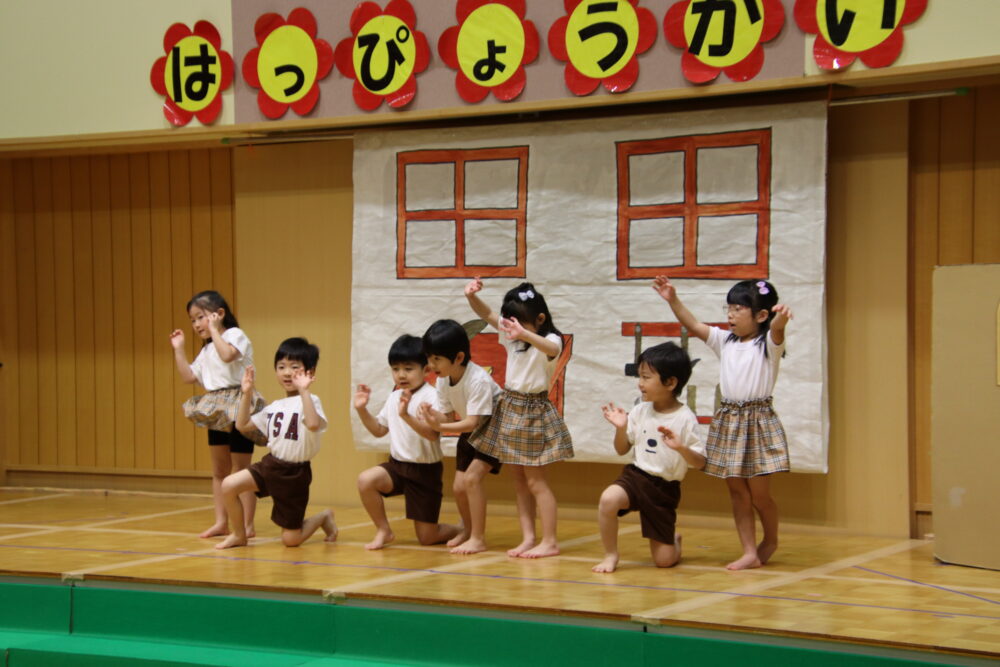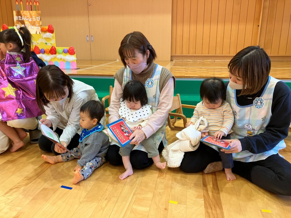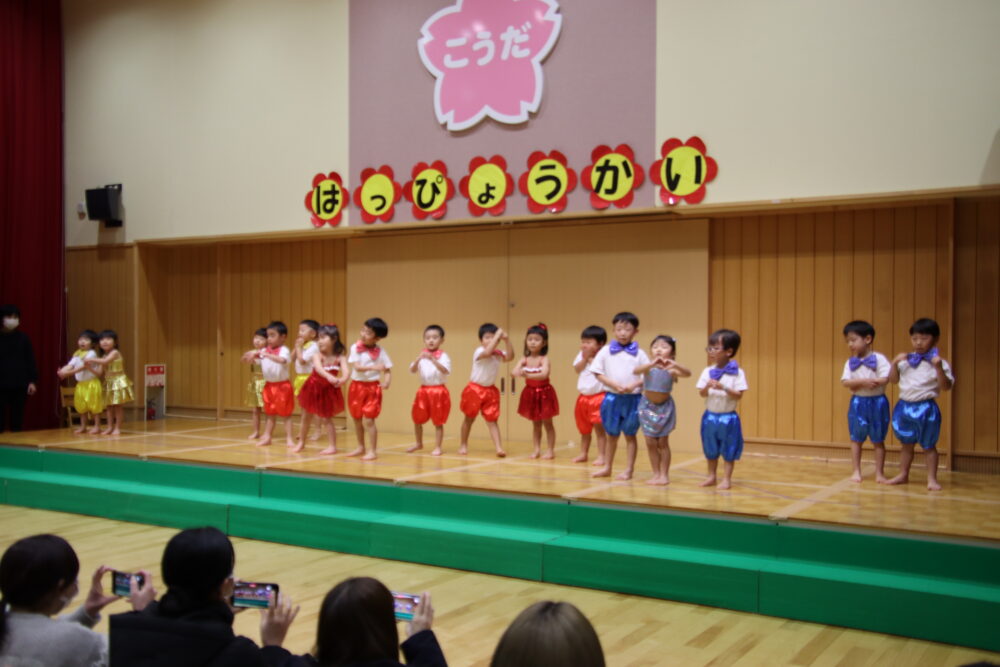 今日は、12月生まれのお誕生会をしました☆ 今月は、青組さん5人、黄組さん2人、桃組さん1人、ひよこ組さん3人の11人!!インタビューしたり、ハッピーバースデーのお歌を歌ったりしてみんなでお祝いしましたよ♪ お楽しみ会の最後は、青、黄、桃組さんによる発表会のリズム披露☆彡 素敵なダンスで会場がとっても盛り上がりましたよ。12月生まれのお友だち、素敵な1年になりますように・・・♡