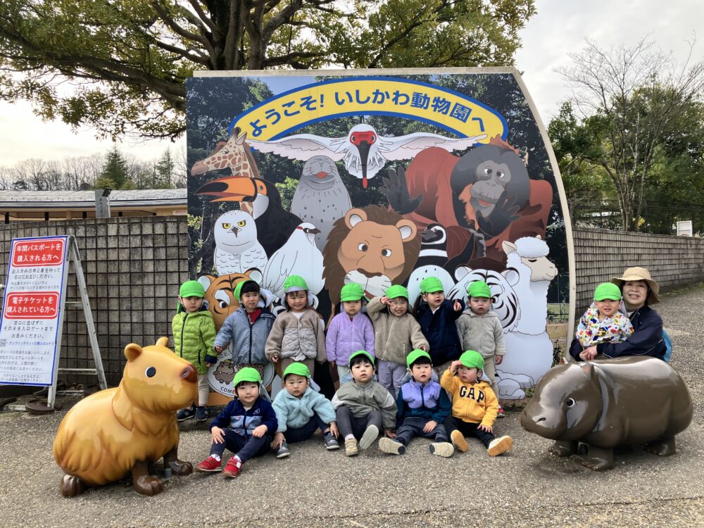 バスで『いしかわ動物園』にお出かけしました♪お出かけする前から、どうぶつの絵本を見て、おでかけをとっても楽しみにしていた子どもたち!!バスの中でも、いろんな童謡を歌いながら楽しんで乗っていましたよ。動物園に到着すると、にっこにこの笑顔で「ついたー!!」と大喜び☆彡 途中休憩もしながら、動物園一周頑張りました!!